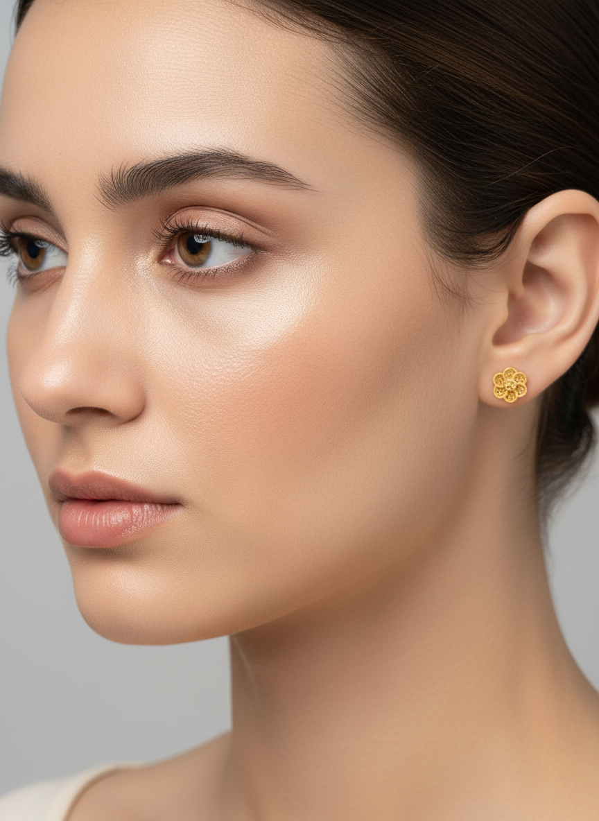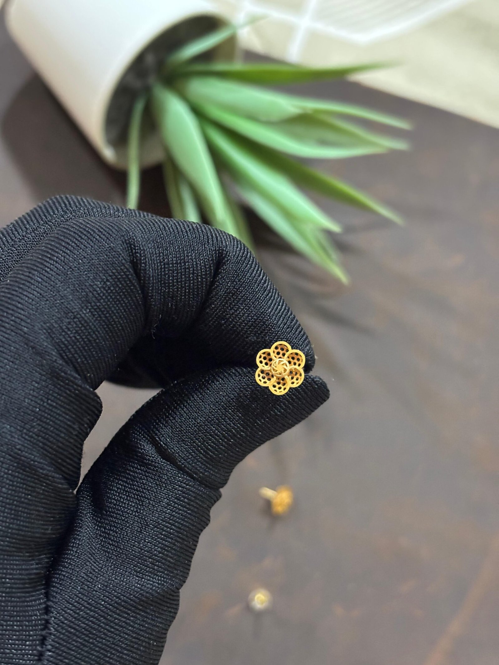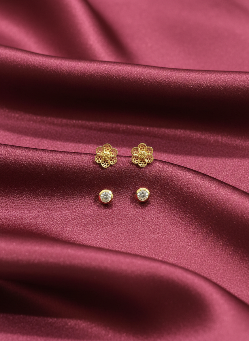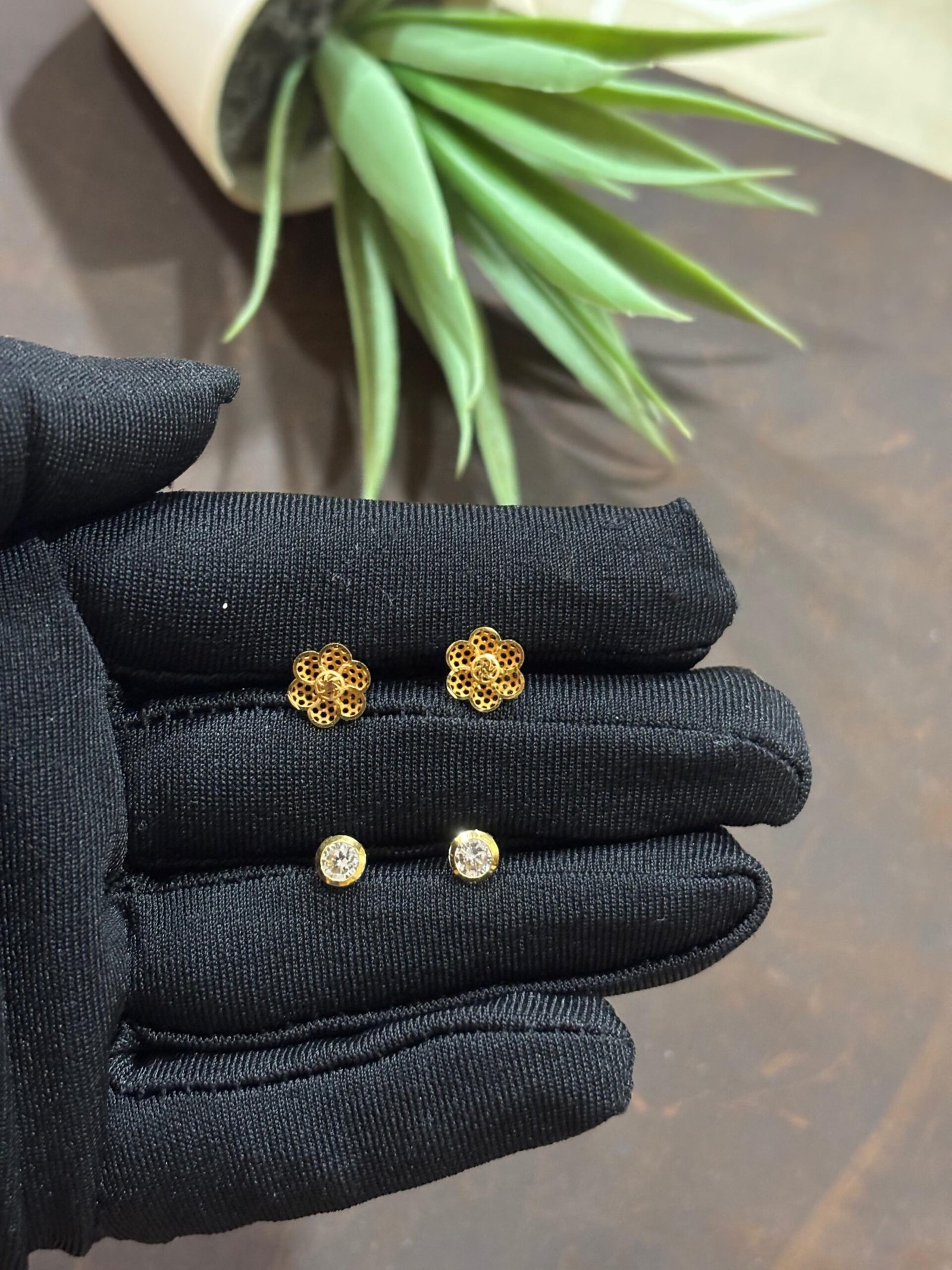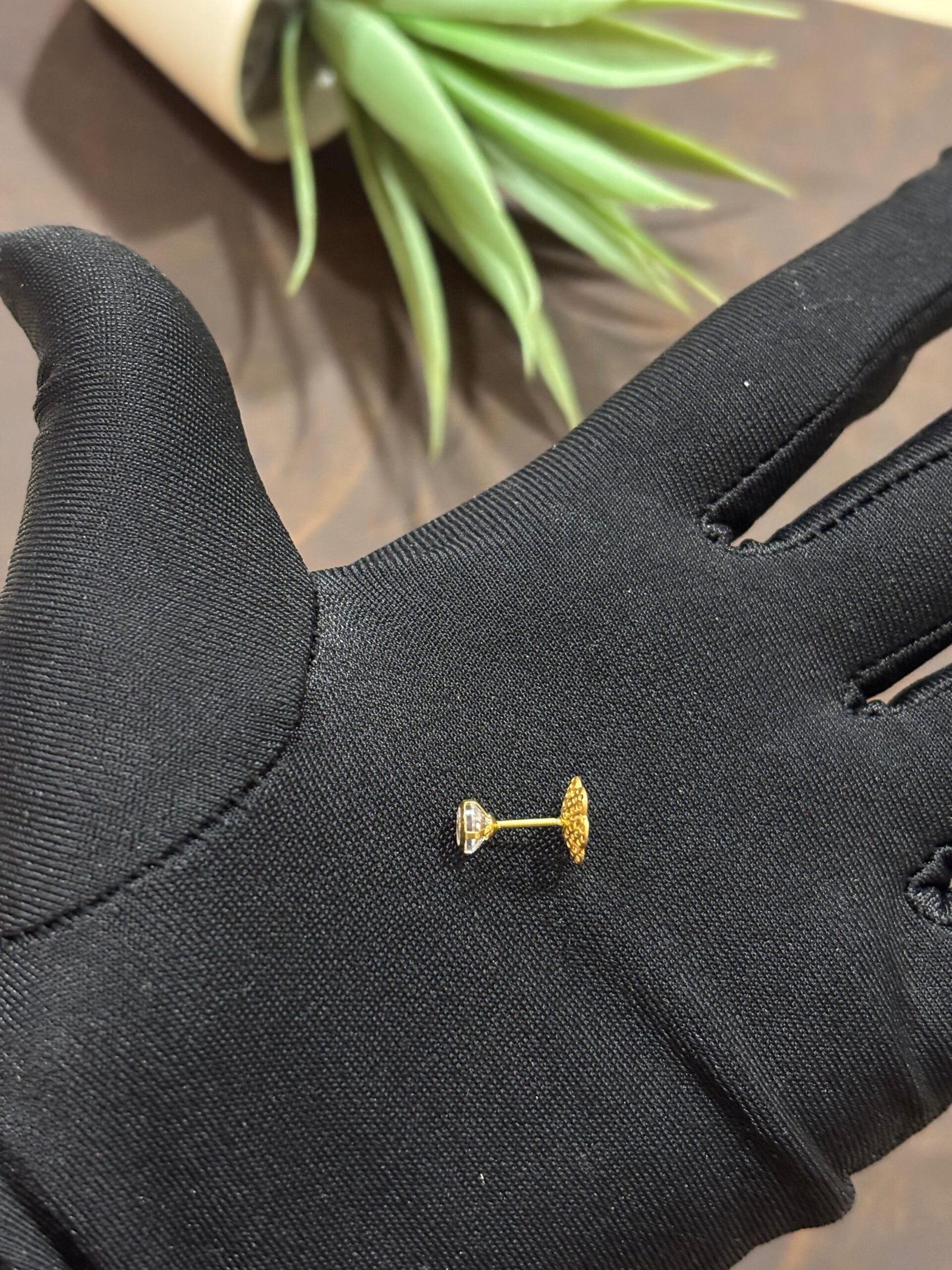 Hallmarked 18K gold earrings embellished with American diamonds.