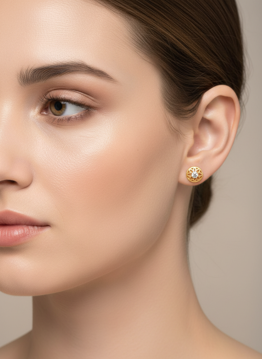 Hallmarked 18K gold earrings embellished with American diamonds.