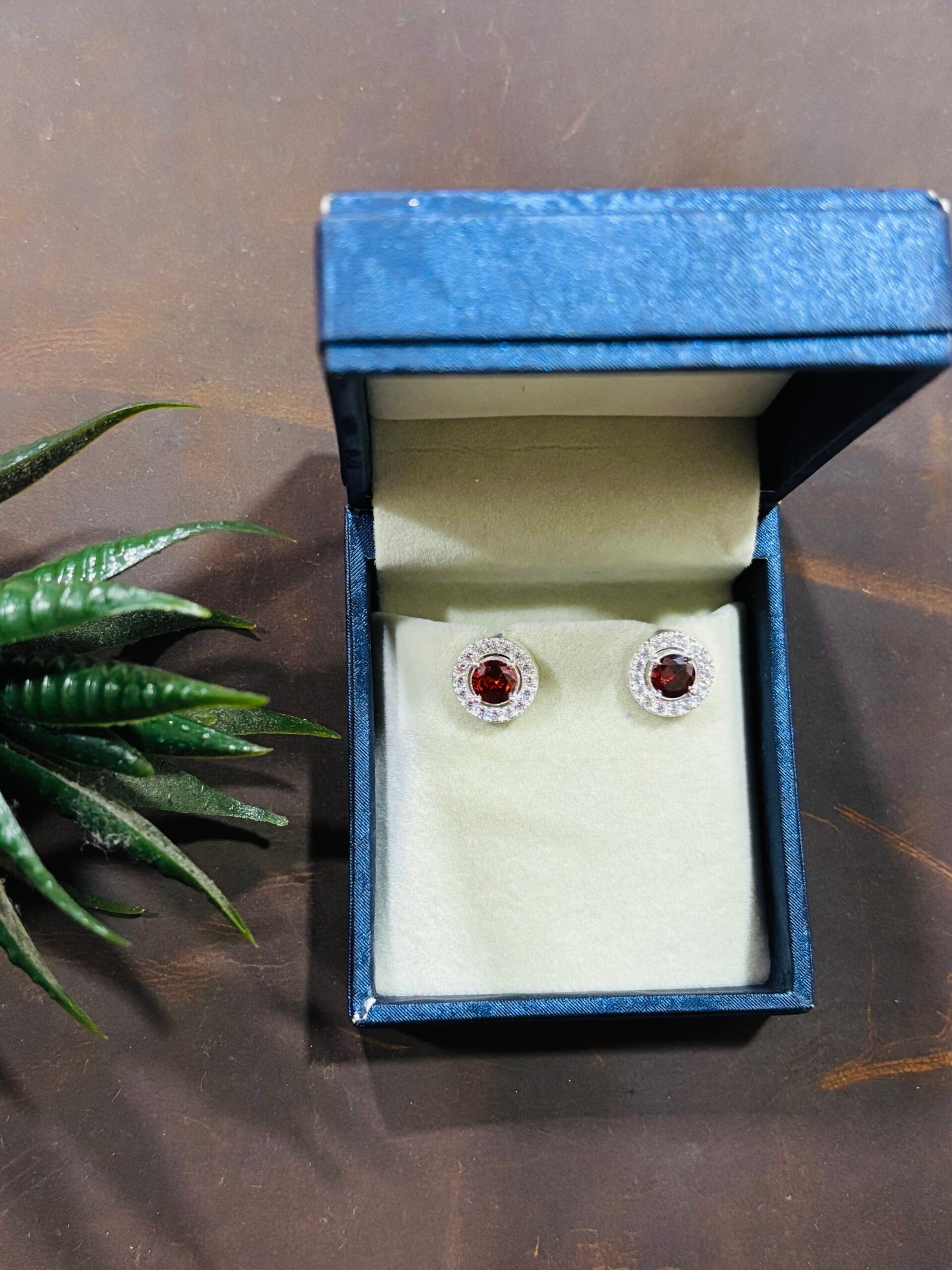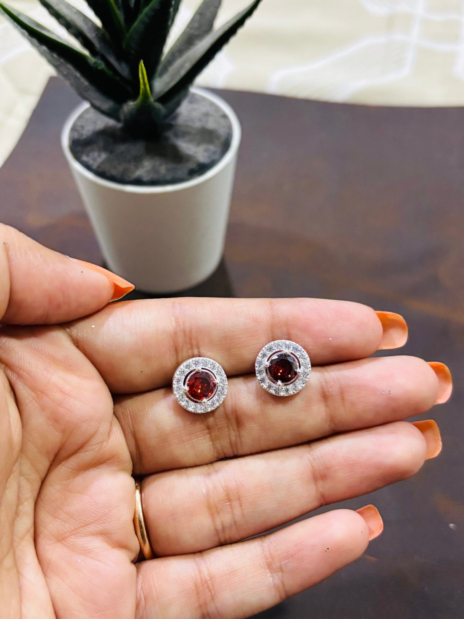 Delicate silver earrings set with shimmering orange gemstones, perfect for everyday elegance.