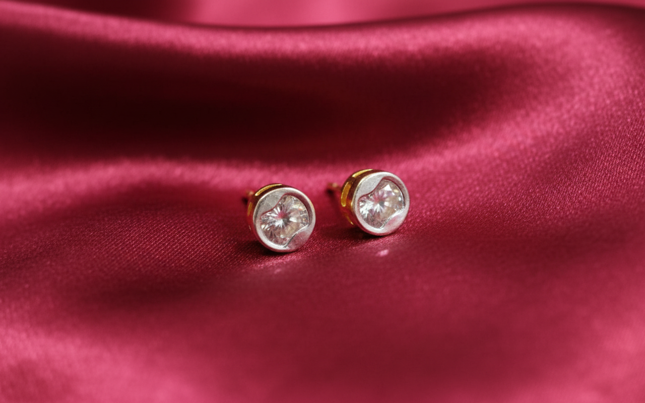 Hallmarked 18K gold earrings embellished with American diamonds.