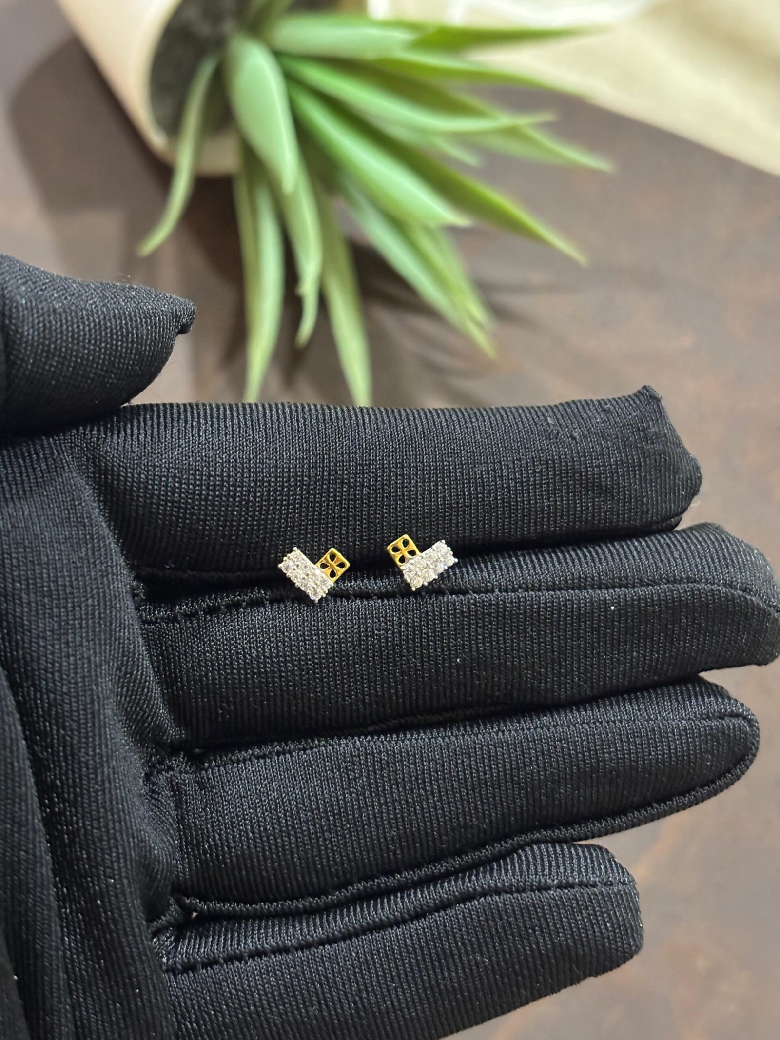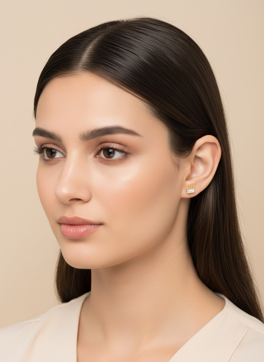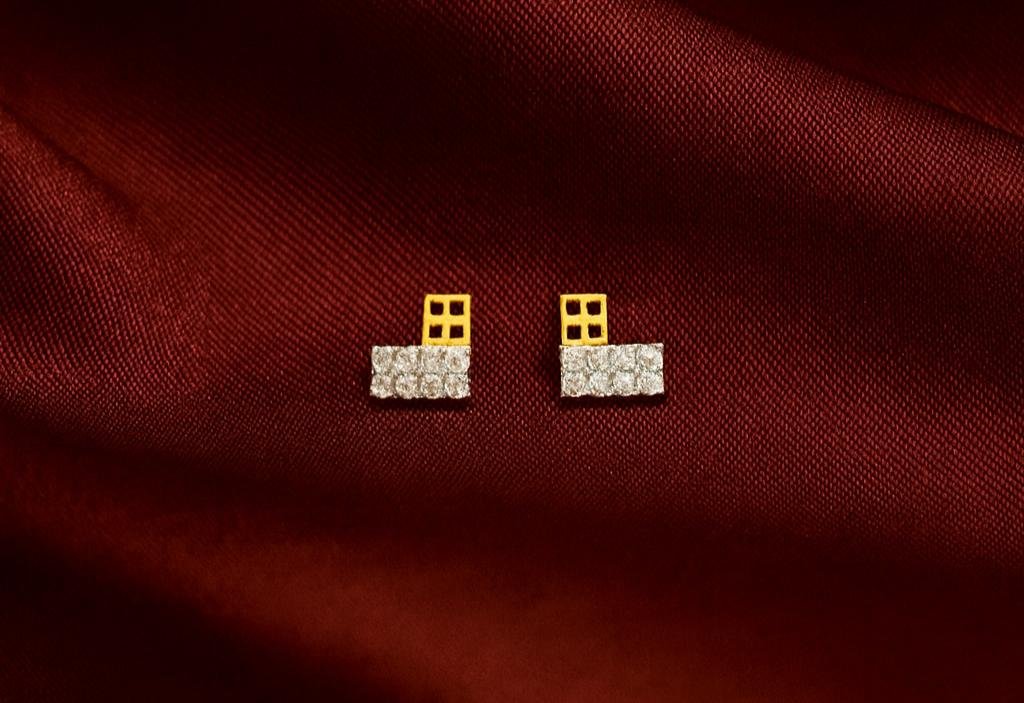 Hallmarked 18K gold earrings embellished with American diamonds.
