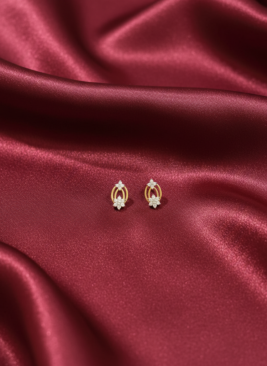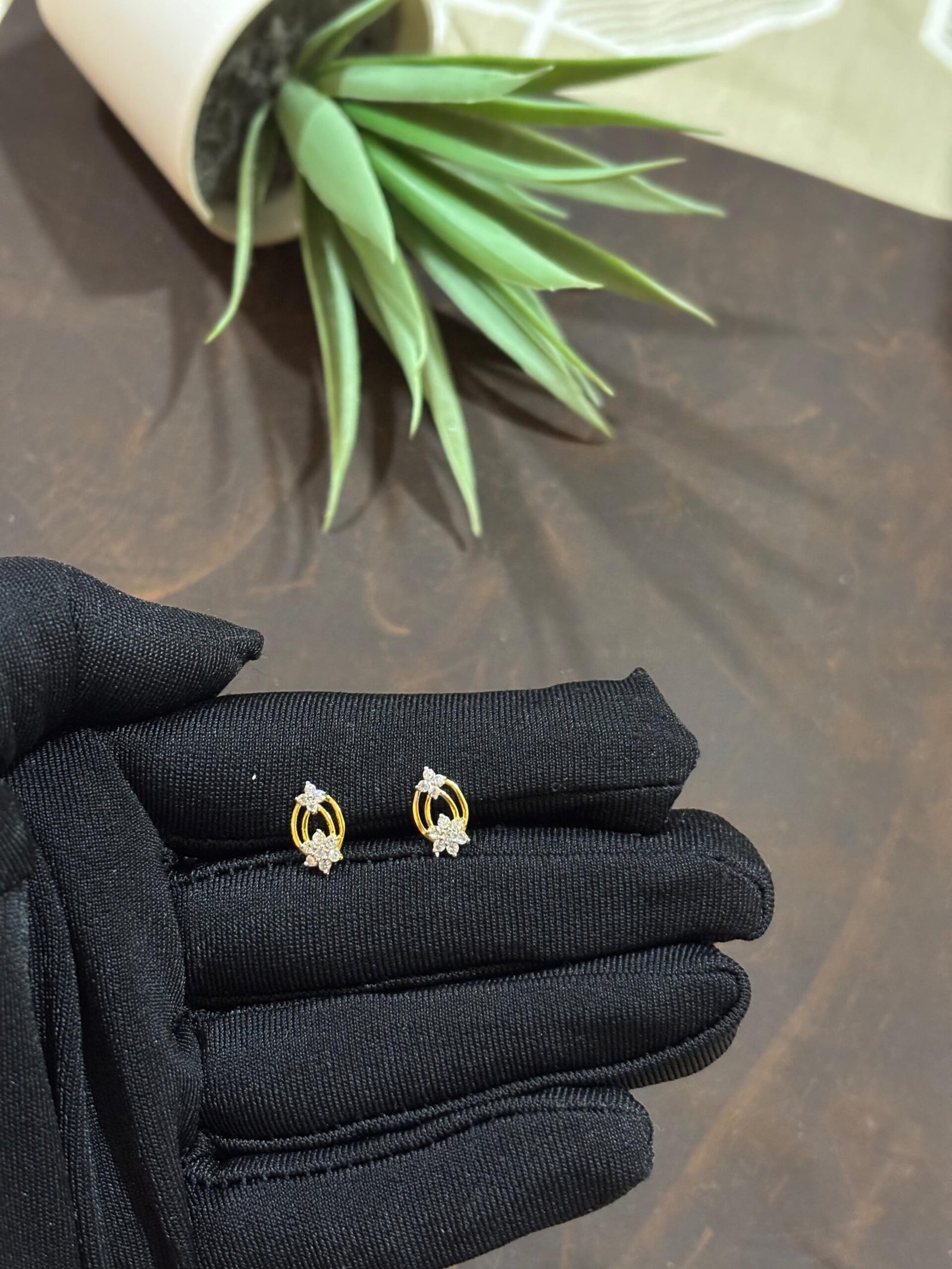 Hallmarked 18K gold earrings embellished with American diamonds.