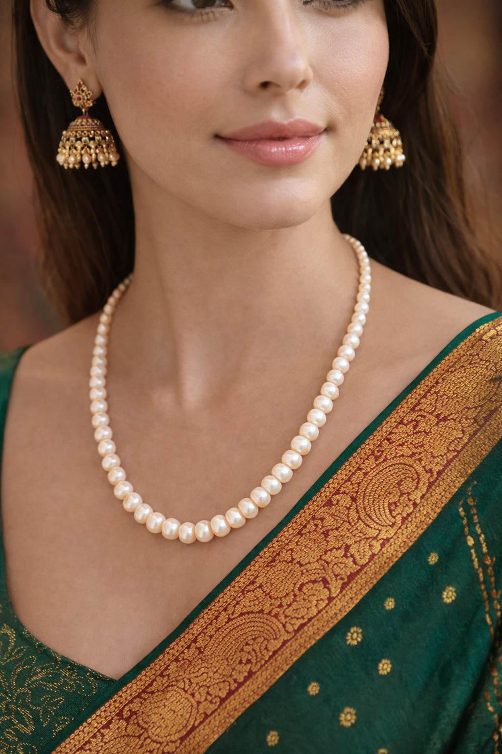 Classic and sophisticated, this pearl necklace is the perfect accessory for both traditional and modern outfits.