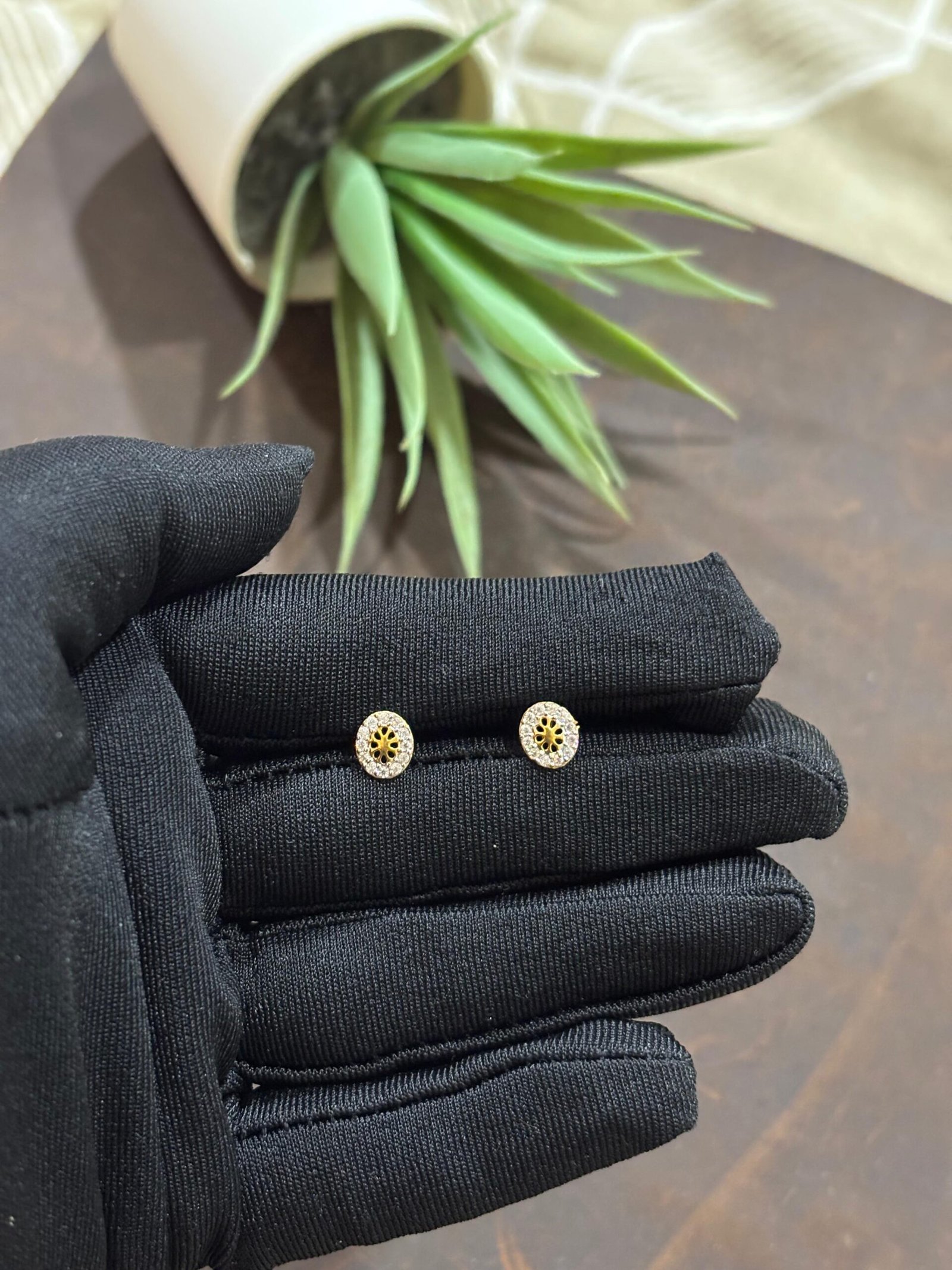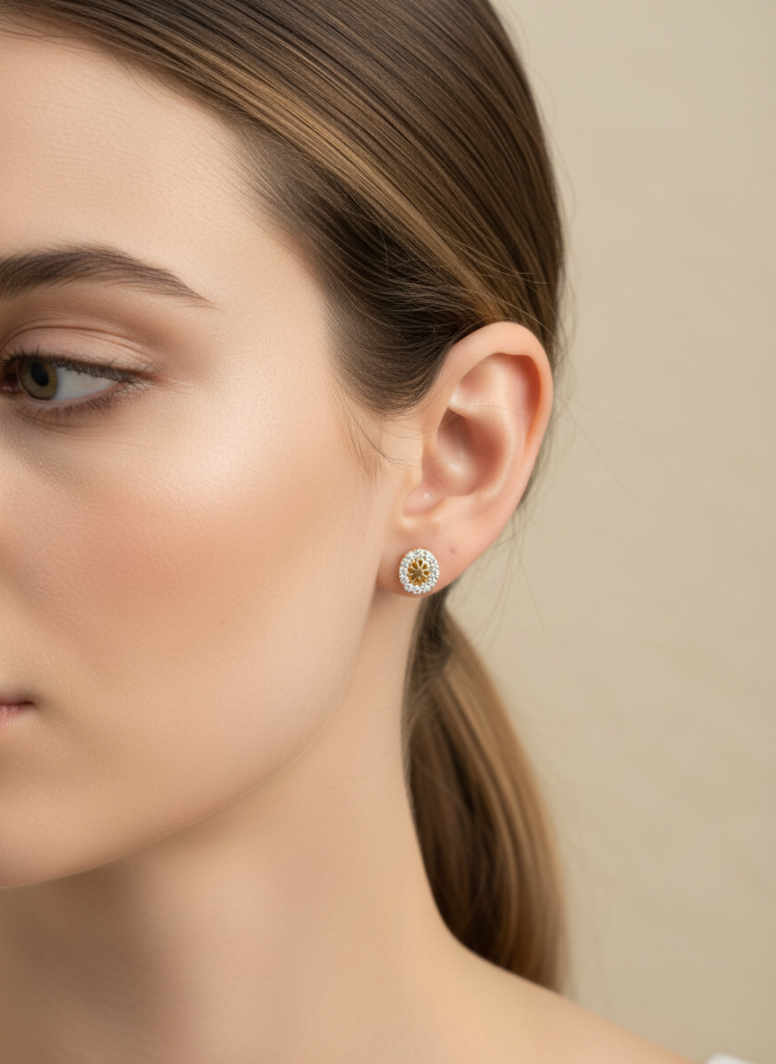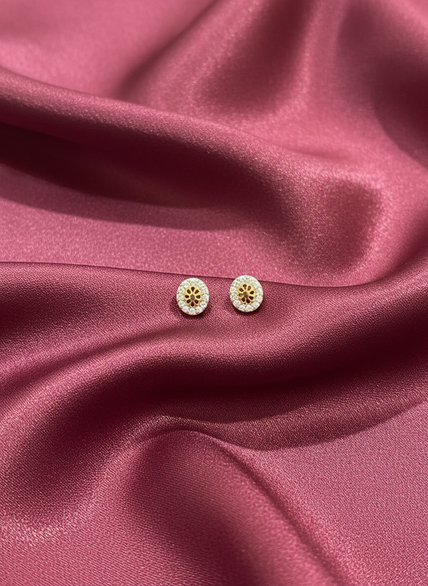 Hallmarked 18K gold earrings embellished with American diamonds.