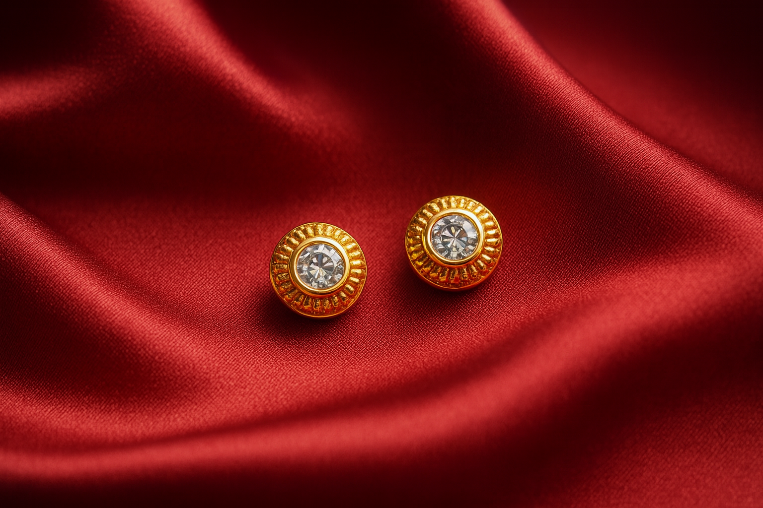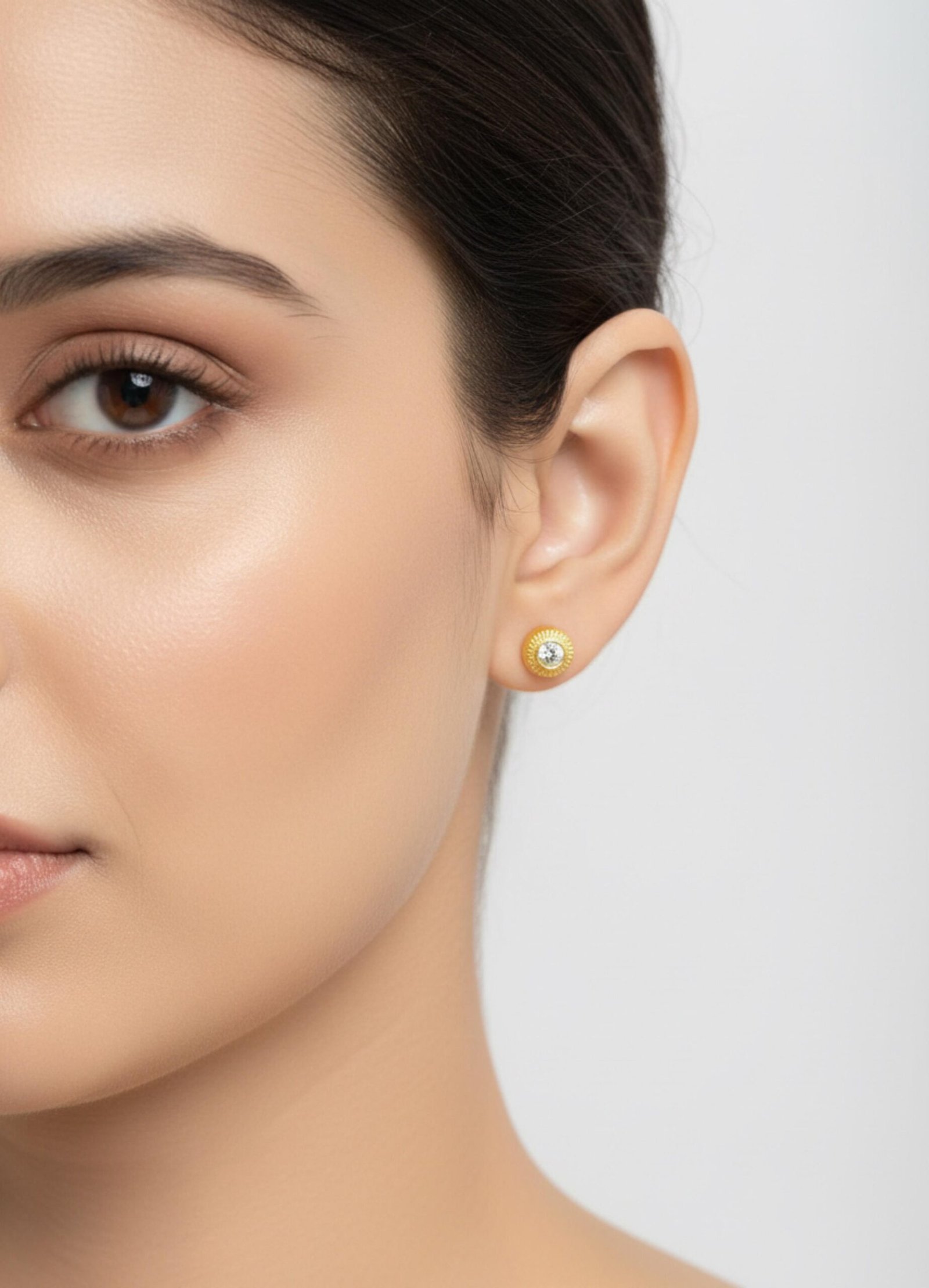 Hallmarked 18K gold earrings embellished with American diamonds.