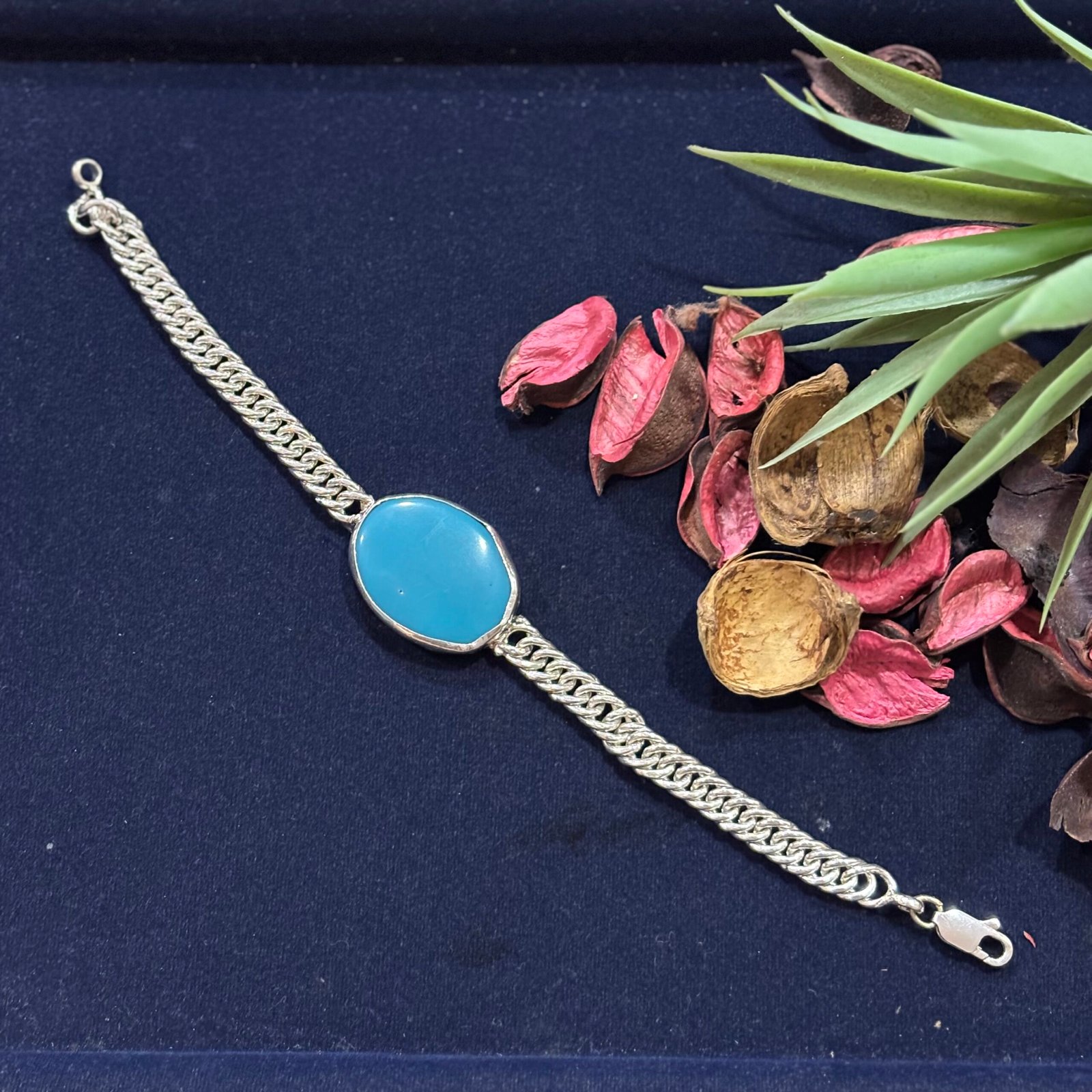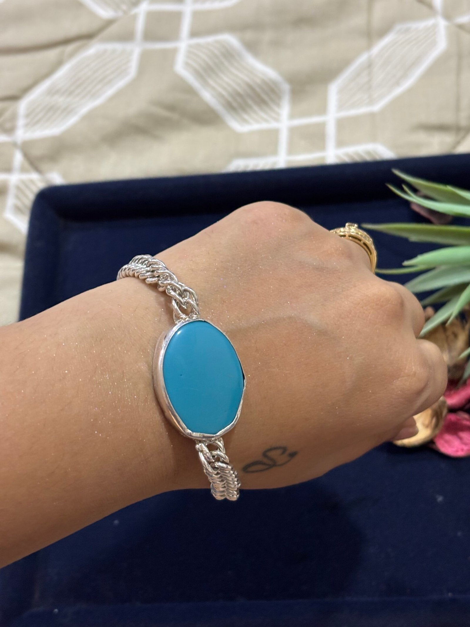 Premium 925 Sterling Silver Bracelet with genuine firoza stone