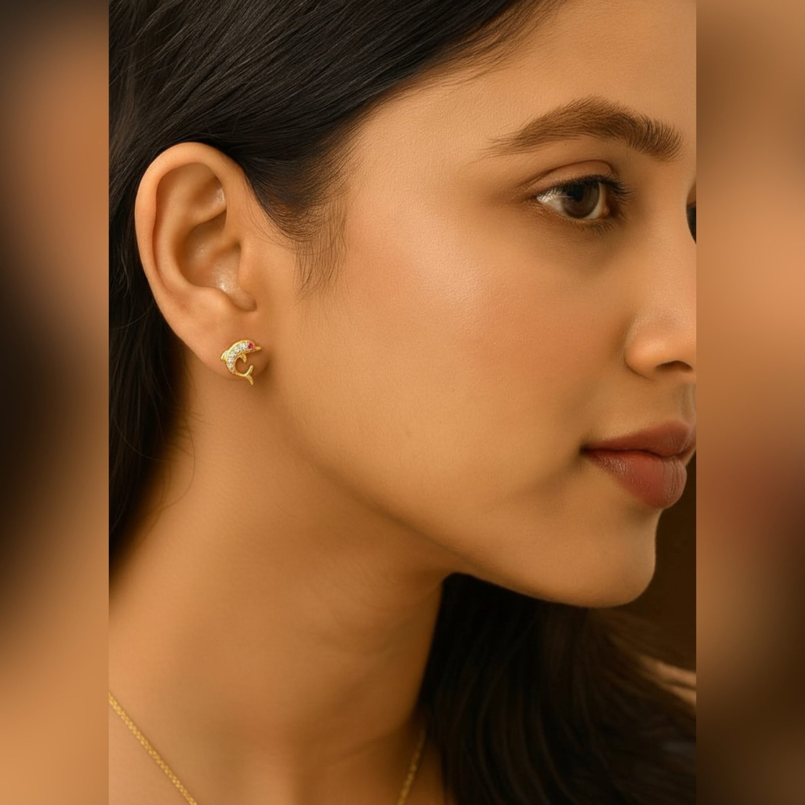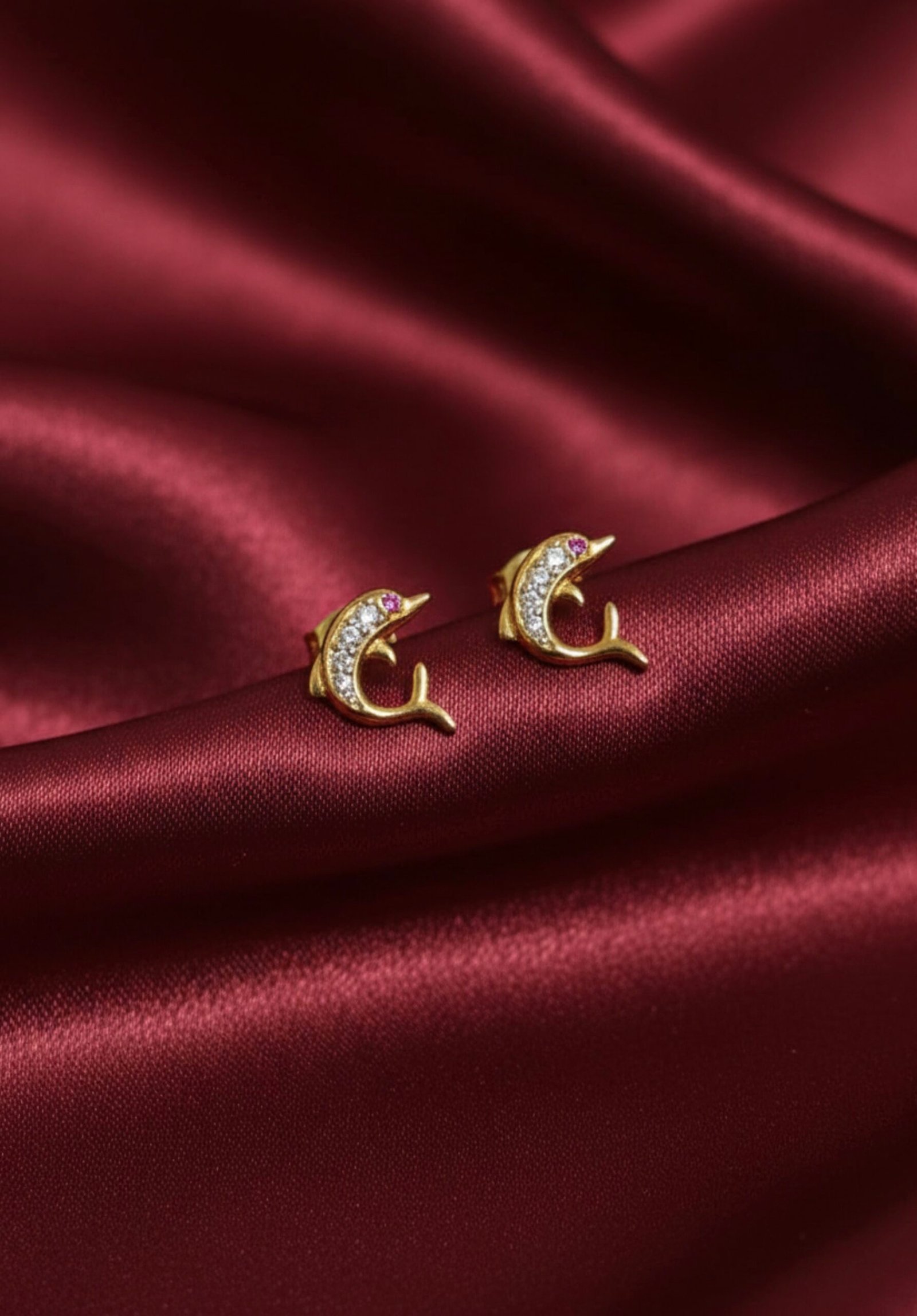 Hallmarked 18K gold earrings embellished with American diamonds.