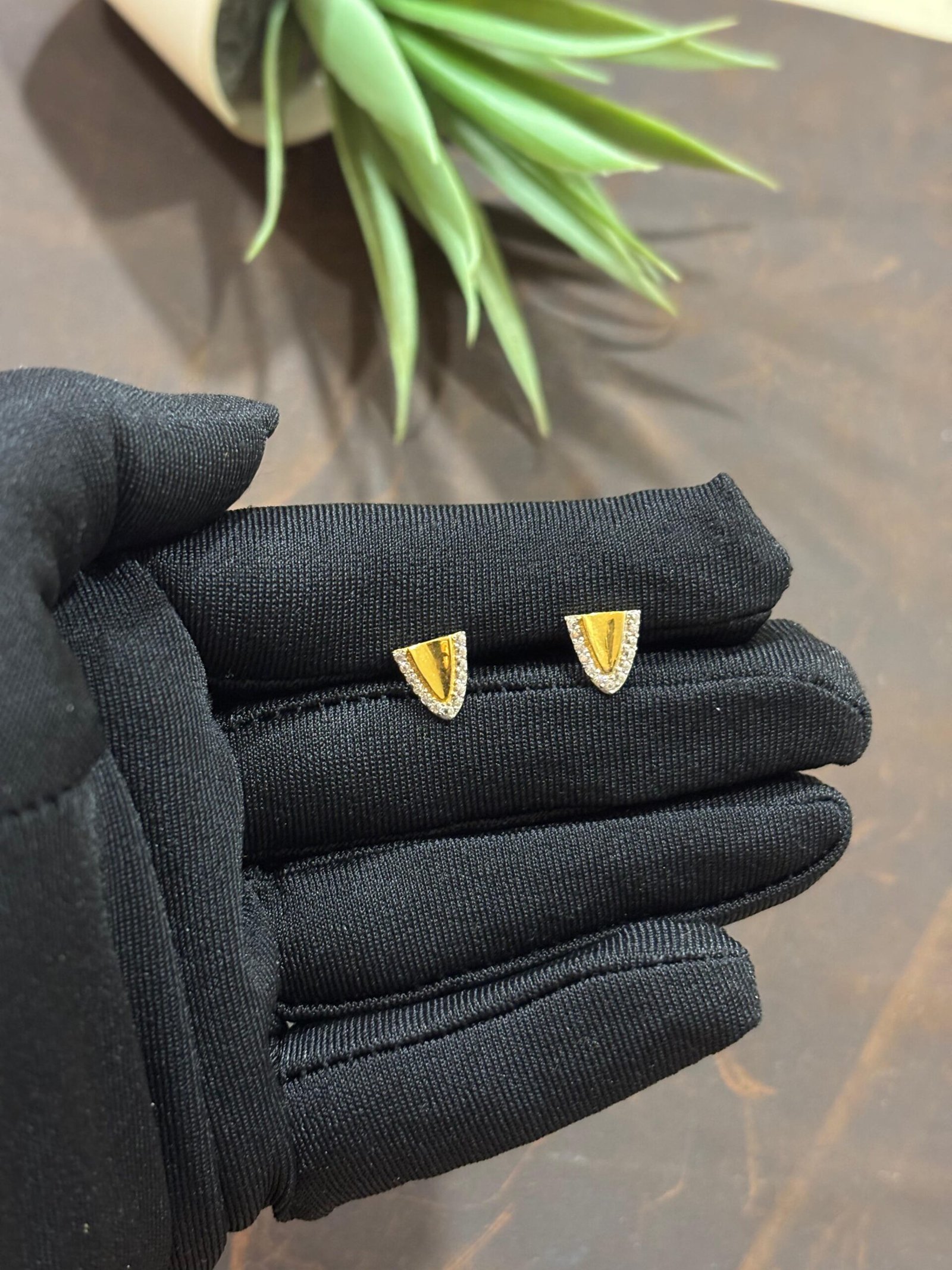 Hallmarked 18K gold earrings embellished with American diamonds.