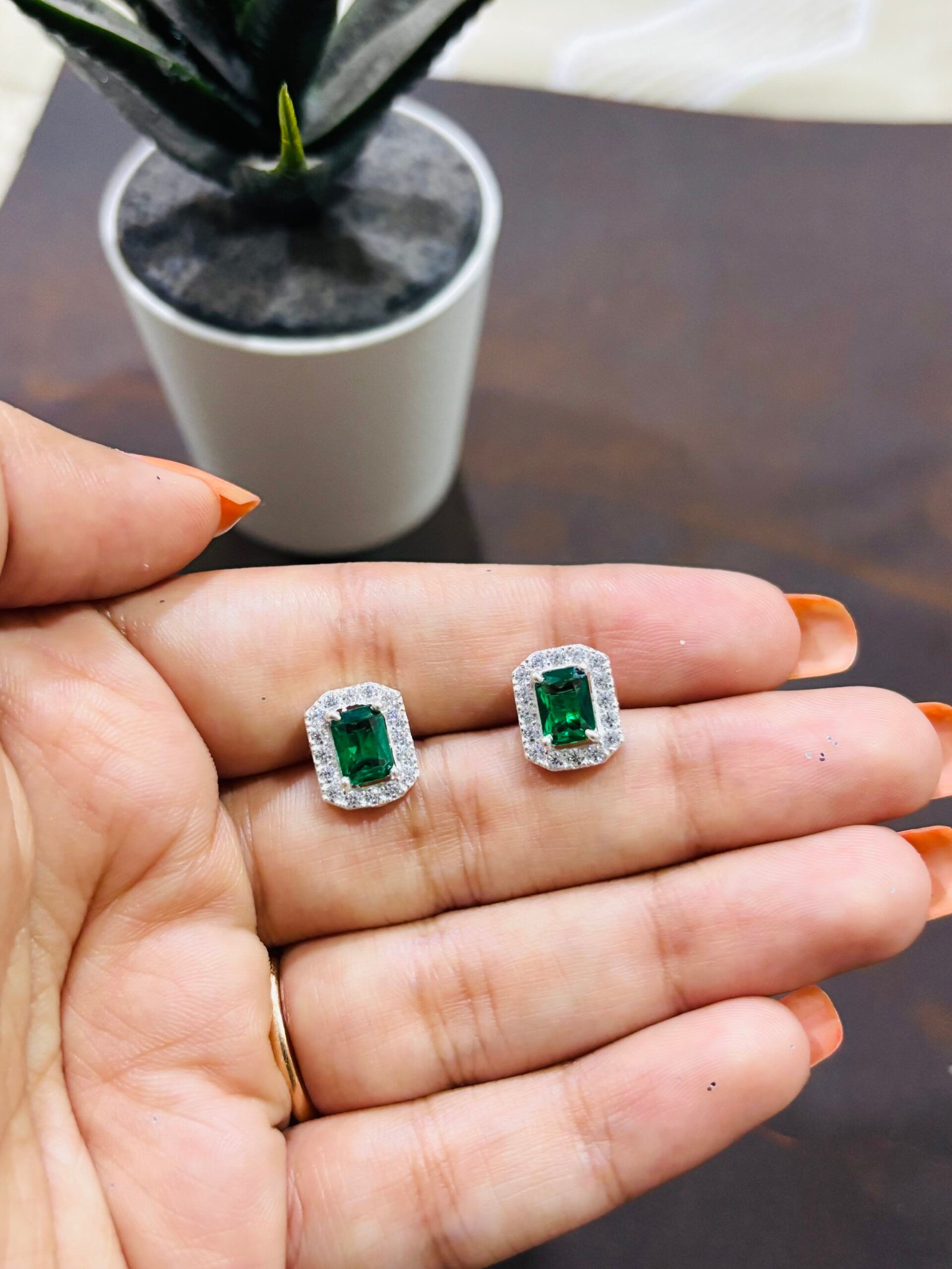 Delicate silver earrings set with shimmering green gemstones, perfect for everyday elegance.