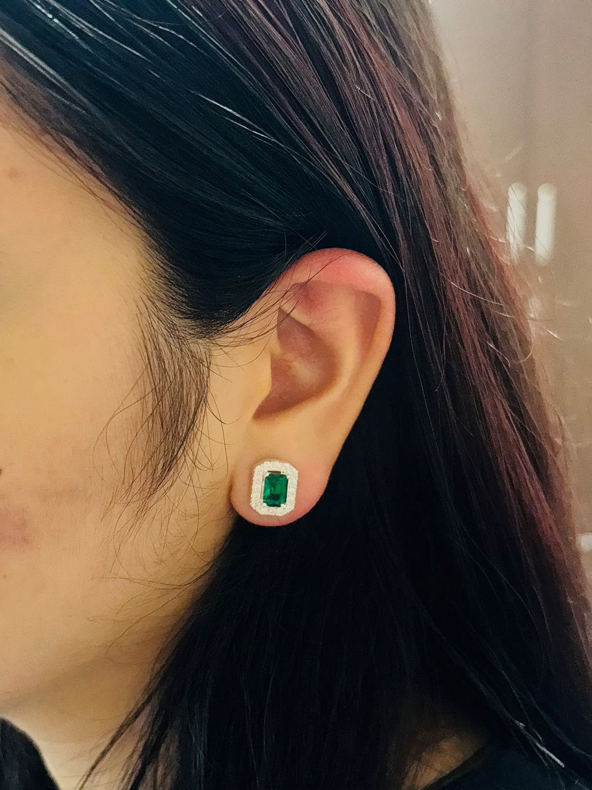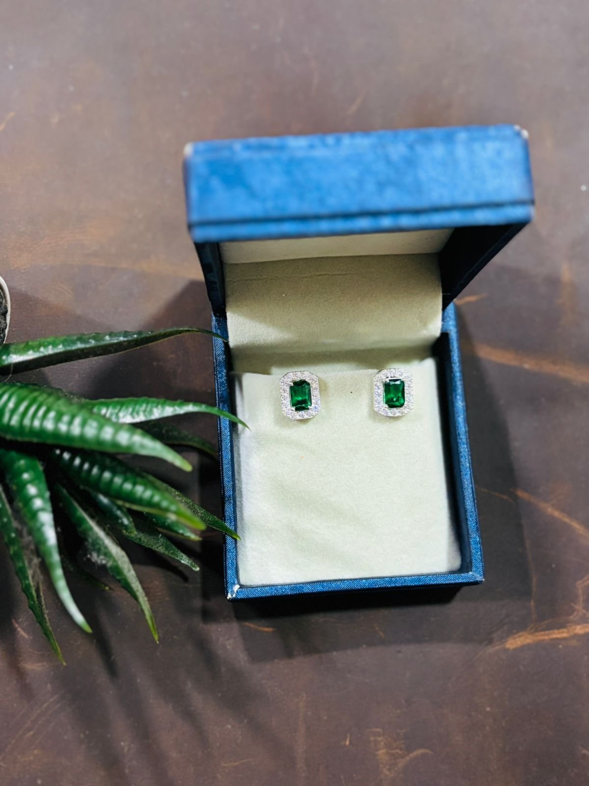 Silver Cushion Cut Green Crystal Halo Studs