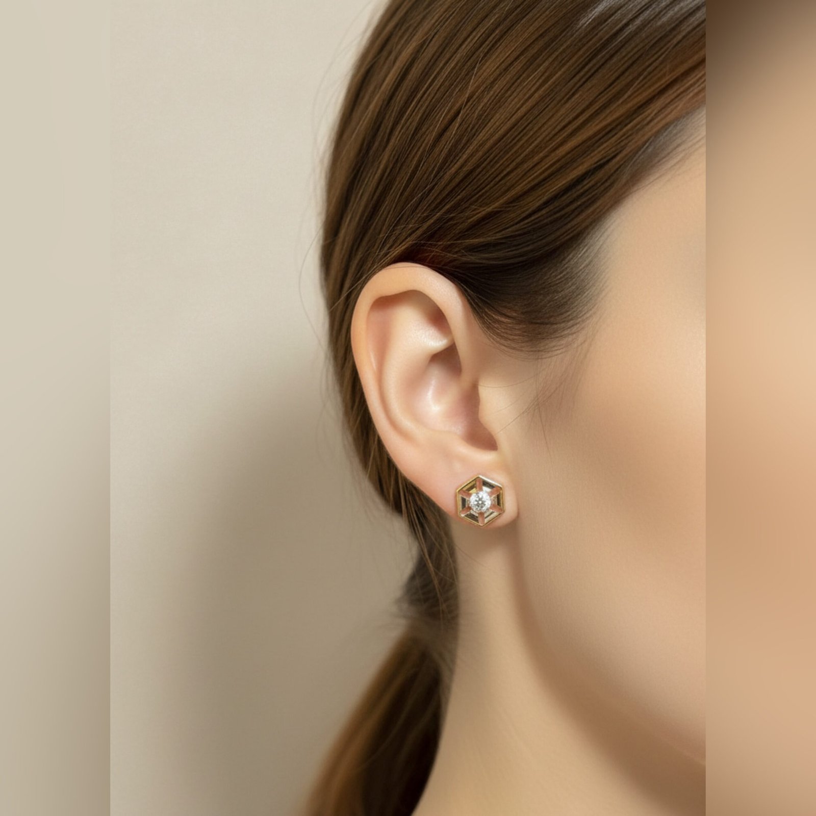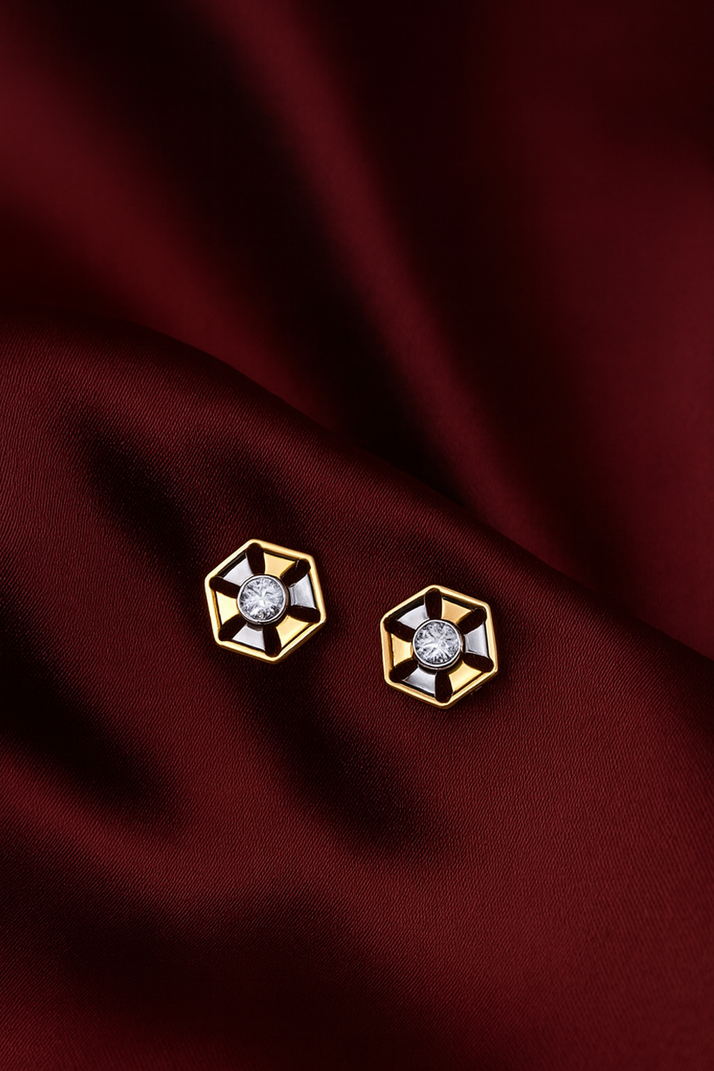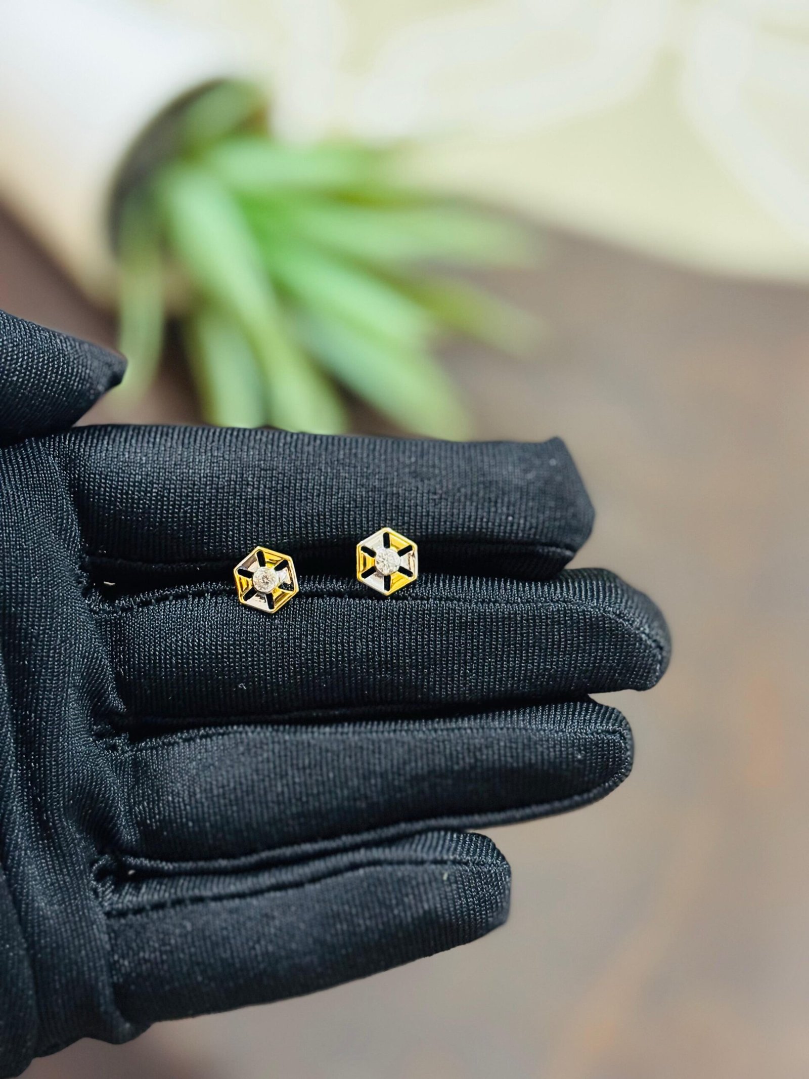 Hallmarked 18K gold earrings embellished with American diamonds.