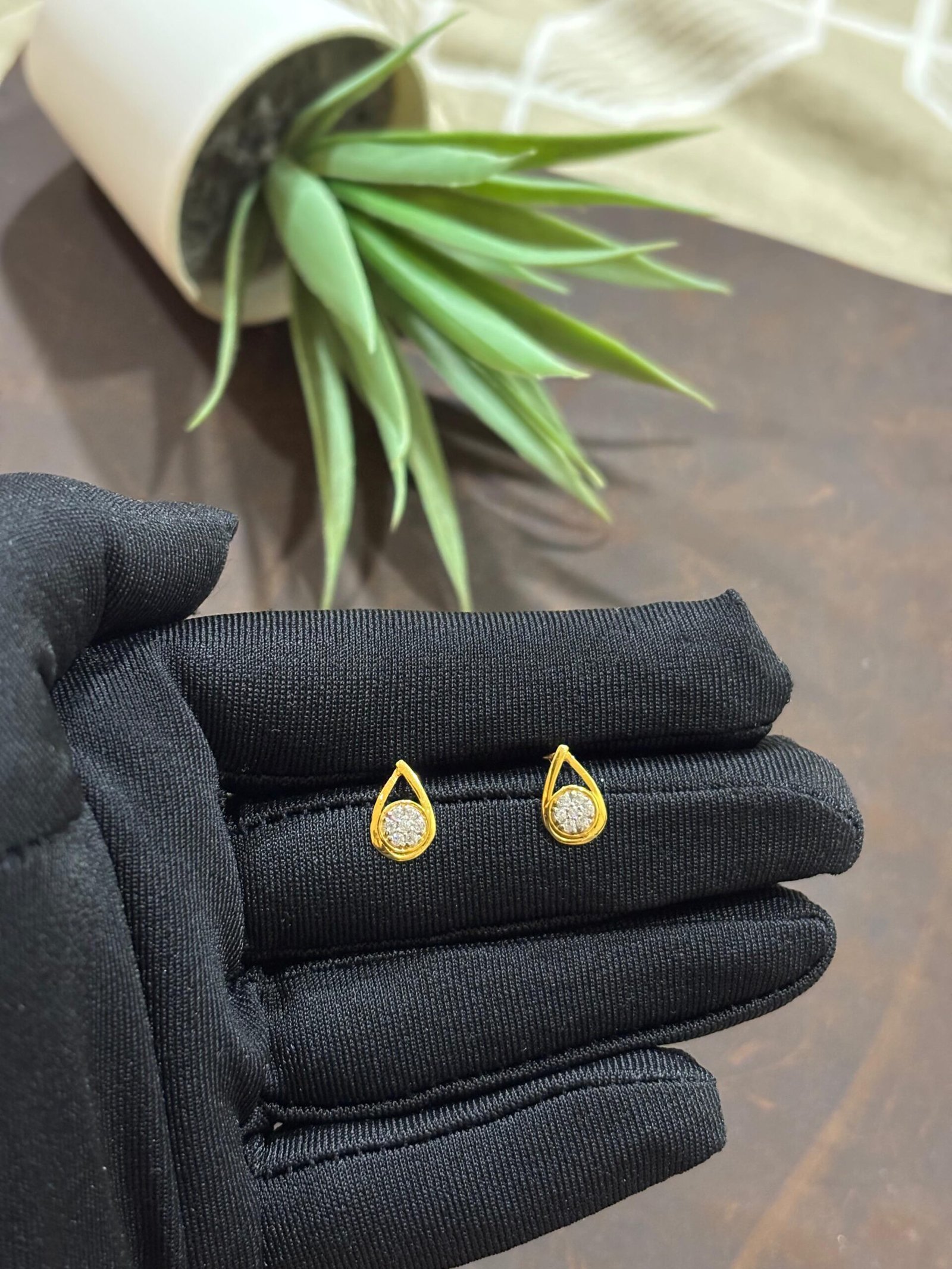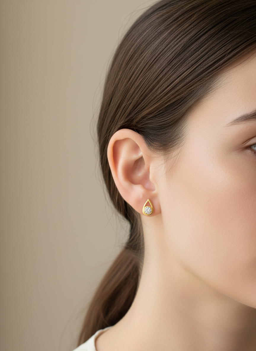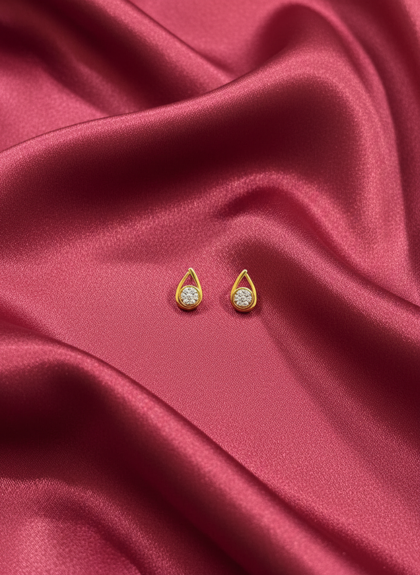 Hallmarked 18K gold earrings embellished with American diamonds.